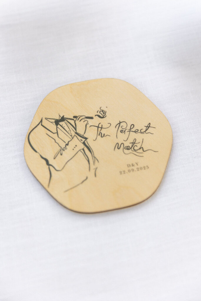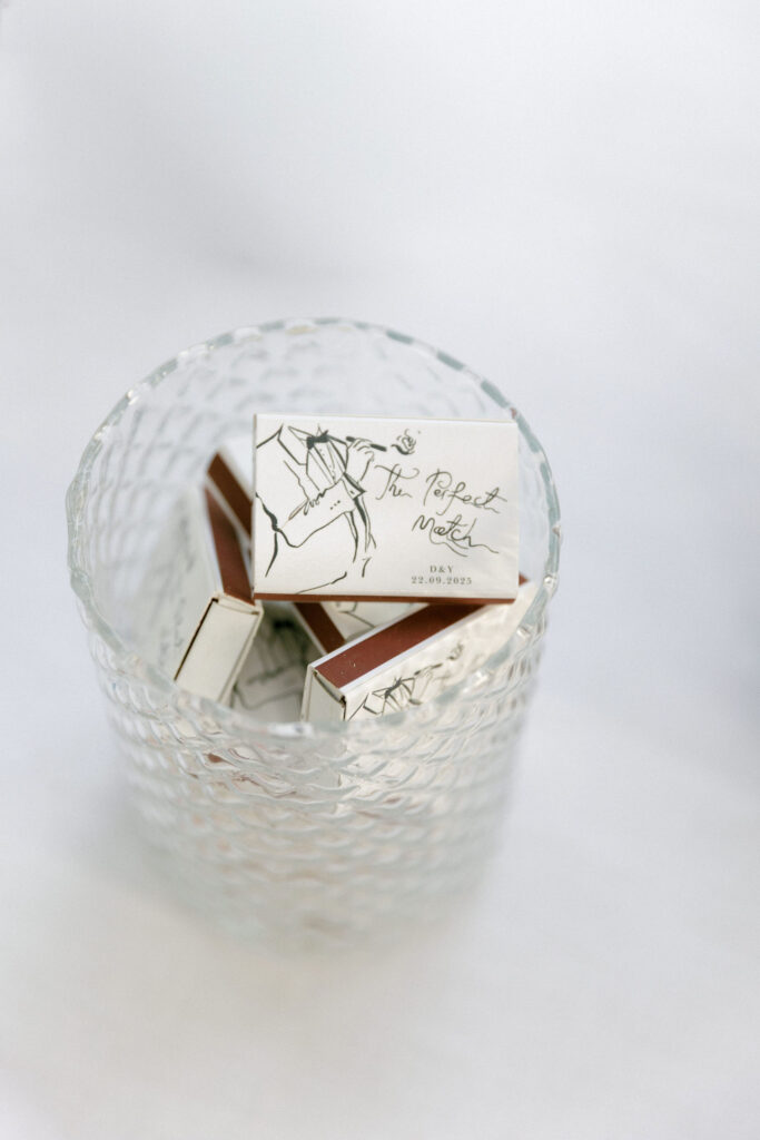 Playful and lighthearted details make a wedding truly special: personalized menus, favors that tell the couple’s stories, and creative seating charts that surprise and delight guests. Even the groom’s company, strolling through the alleys with his closest friends, becomes part of the narrative, adding spontaneity, joy, and conviviality to the day’s story.